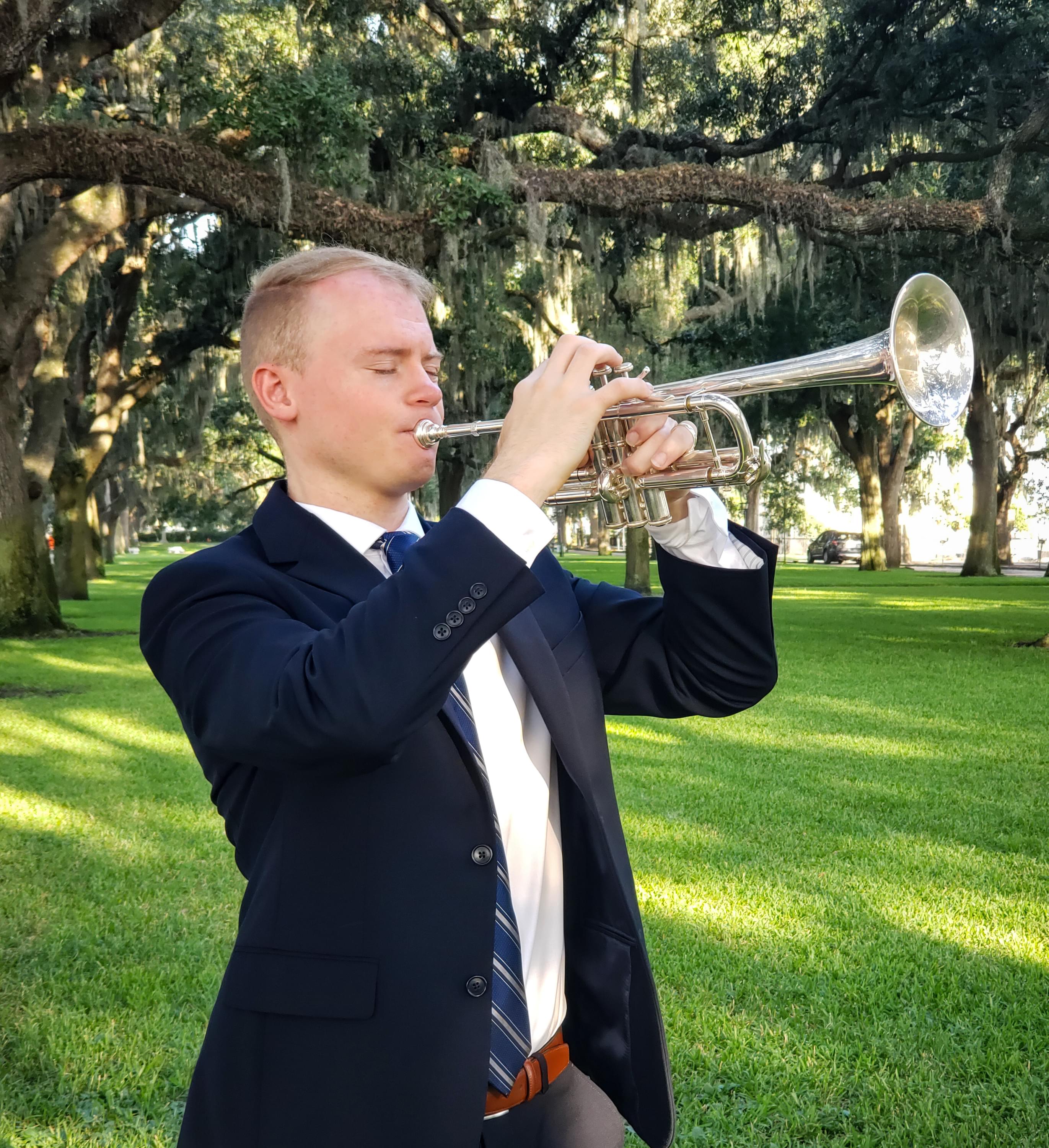 He is a professional trumpet player and is a member of the United States Army Band.